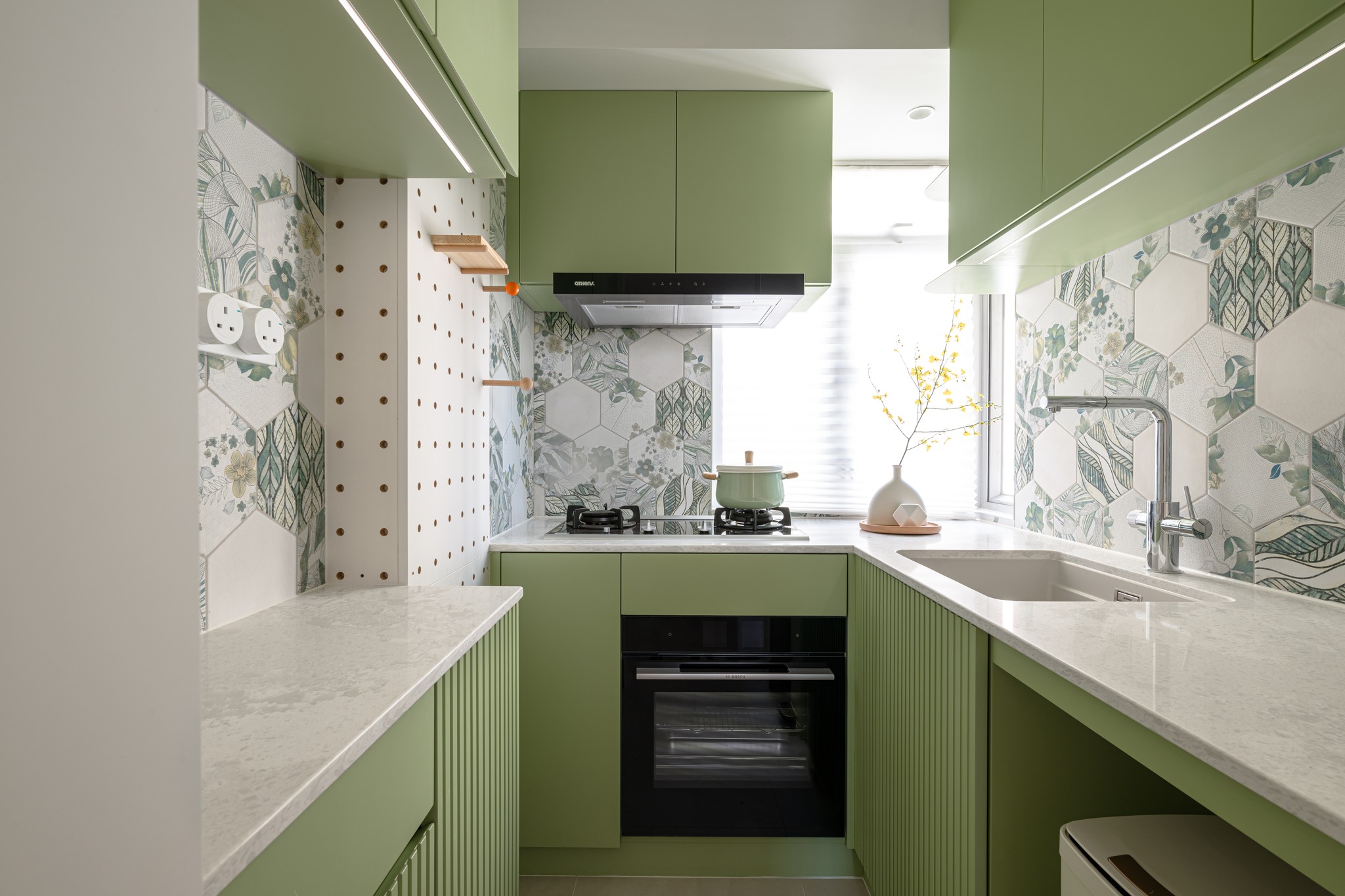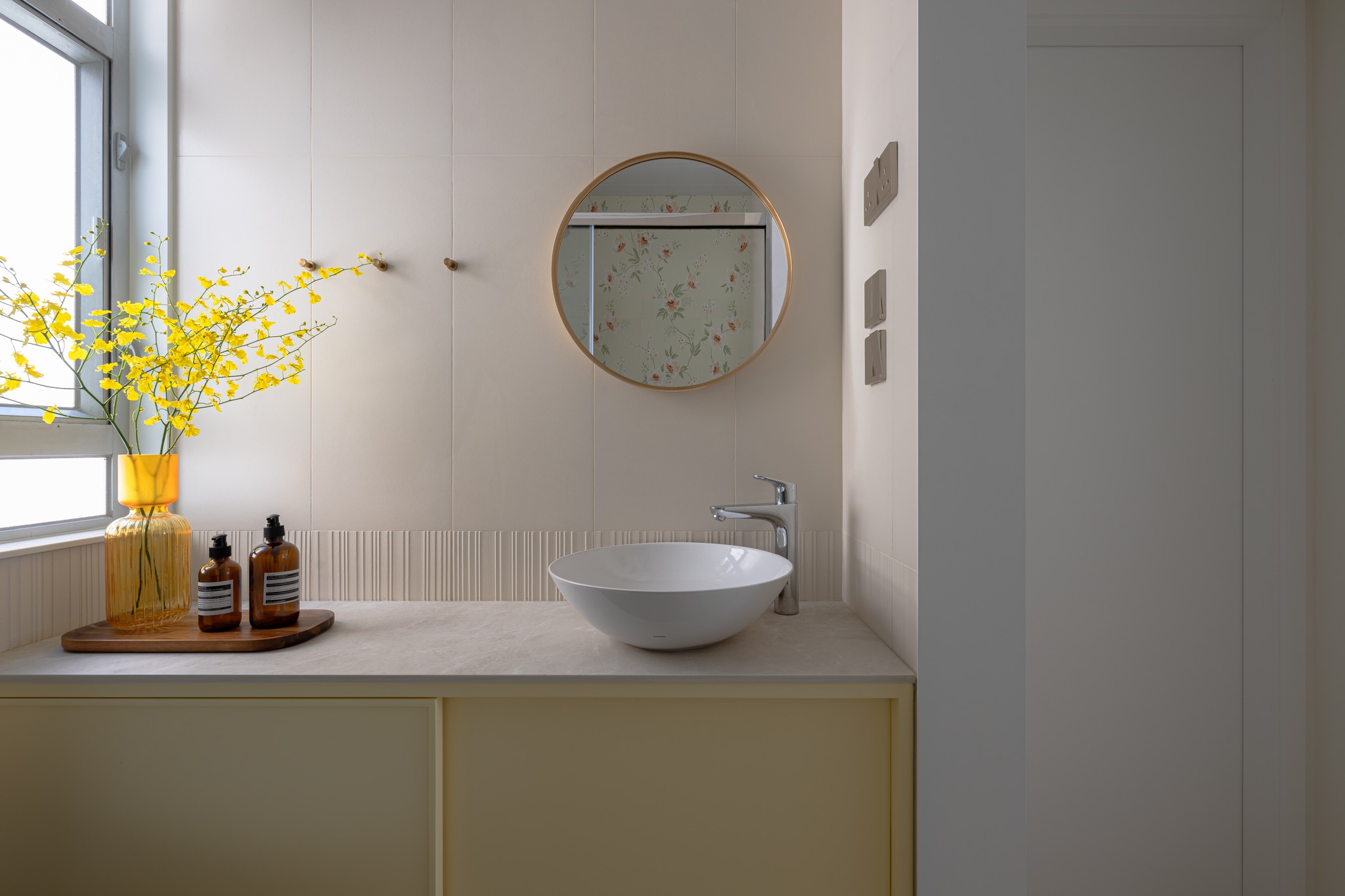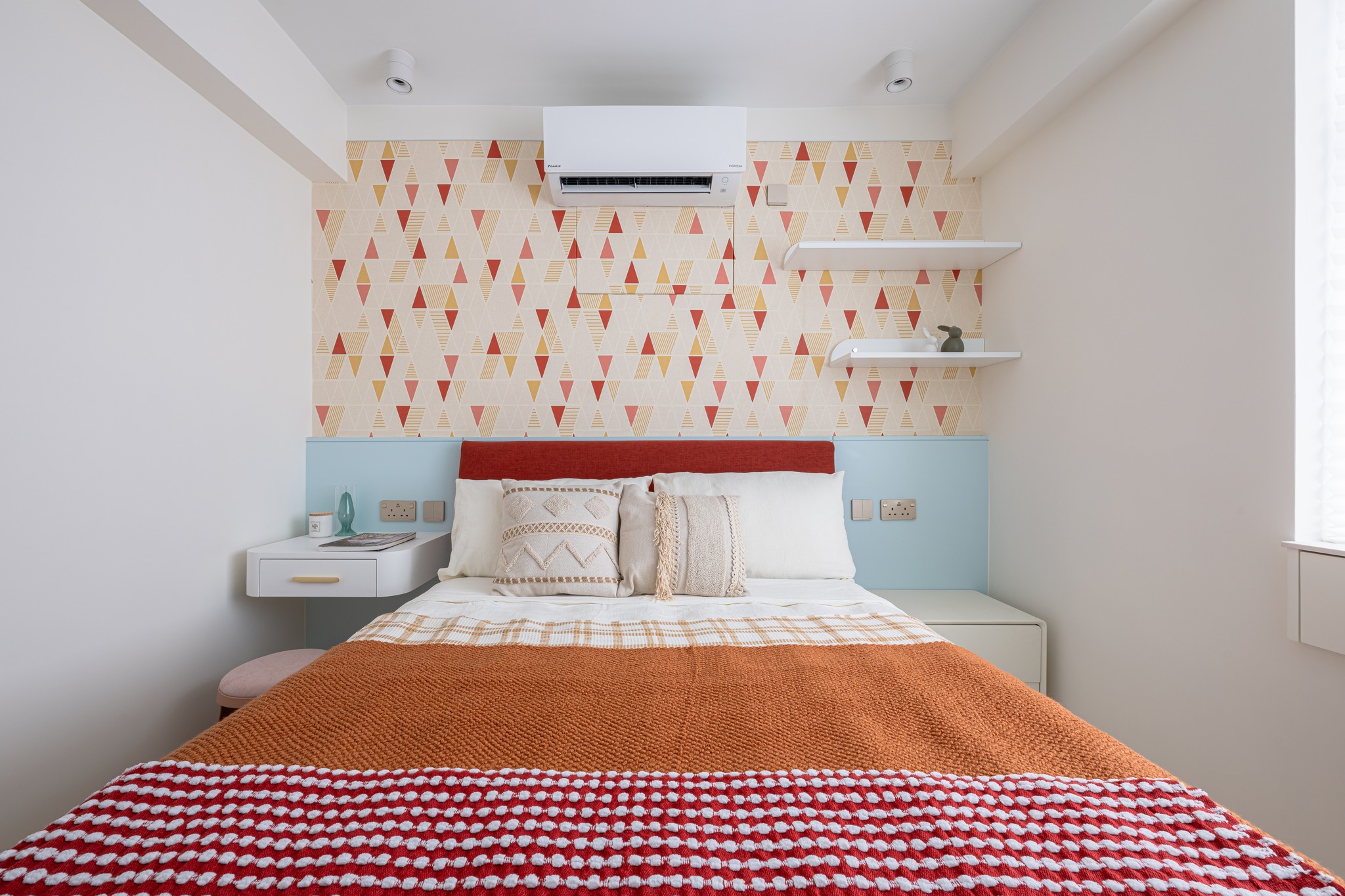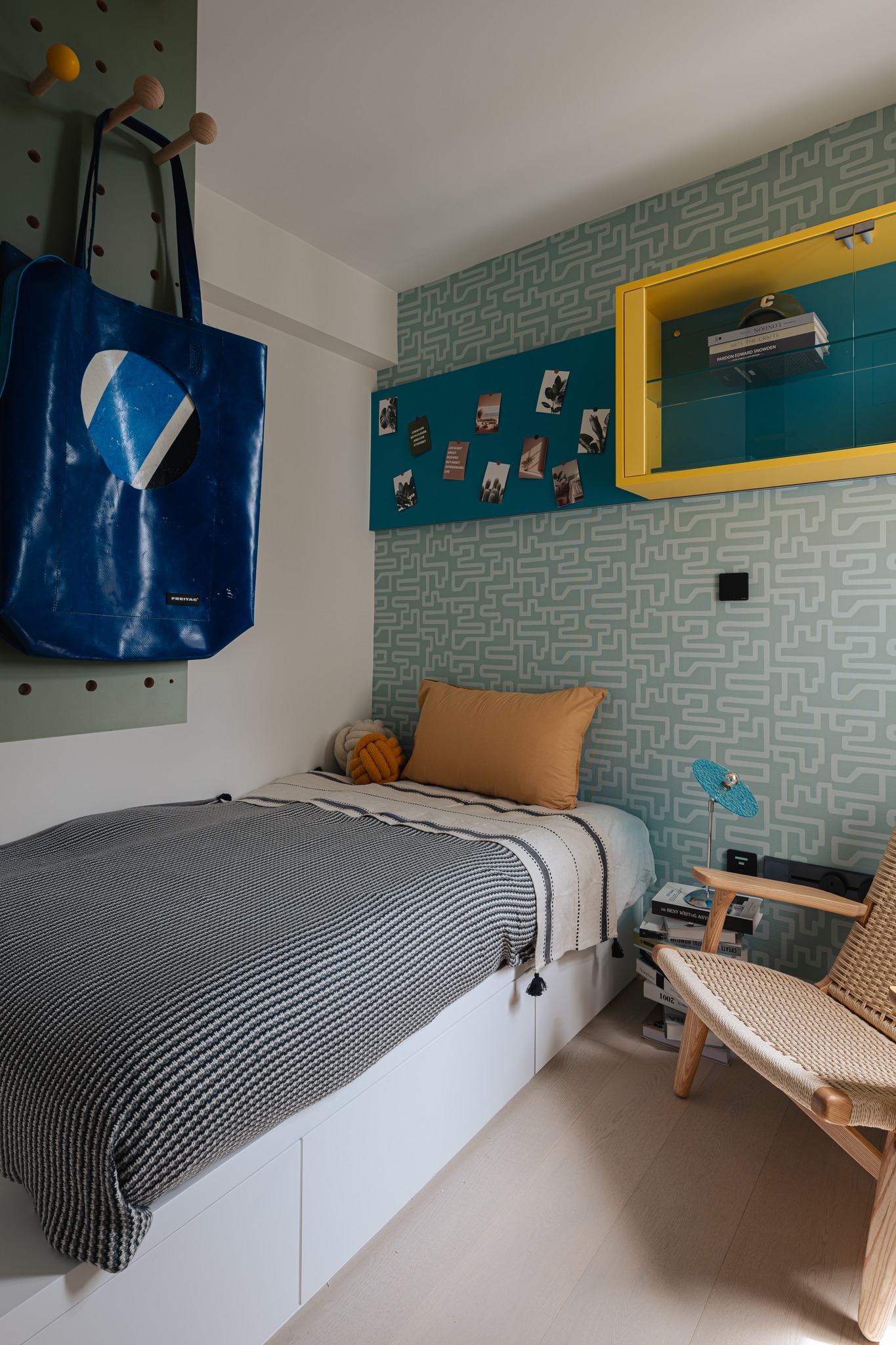 The old unit located in the South District, which is 45 years old, has been designed and renovated. The living room uses the color separation of the platform materials as a key.Also the storage too. The entire unit uses a simple European and American style to create a fresh beauty, and a bright and lively matching of colors to enhance the vitality of the entire living room.