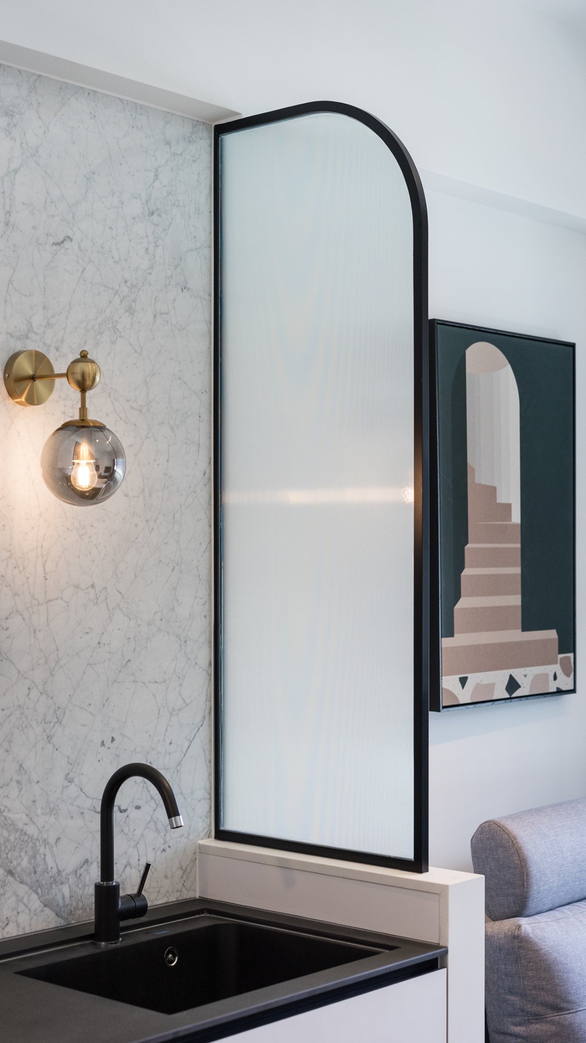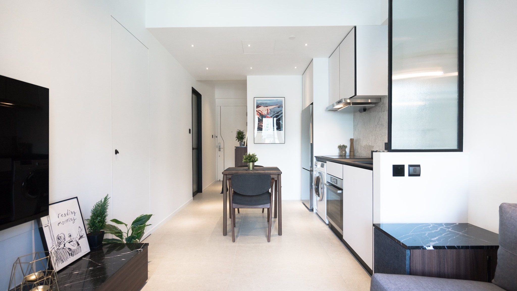 As a place where the homeowner can breathe, the design can be sketched from the face. The blank space becomes an indispensable background, and the barrier-free layout allows sunlight to wash over the entire space, transforming each piece of furniture into a work of art, imbuing it with a sense of life. The addition of black materials and stripes as design accents creates a more balanced overall effect.
