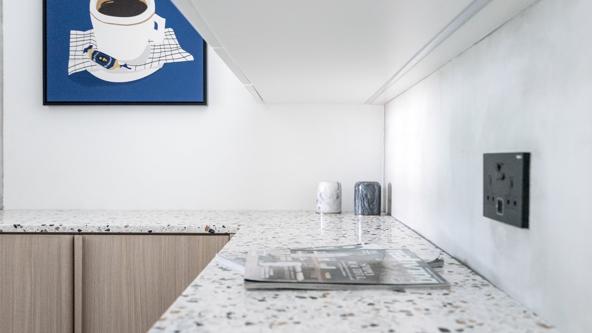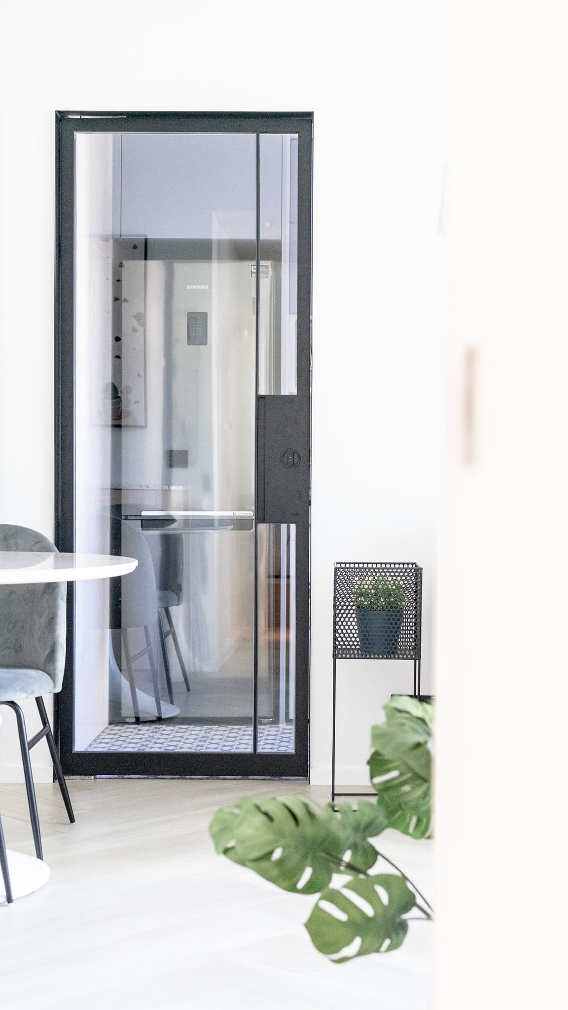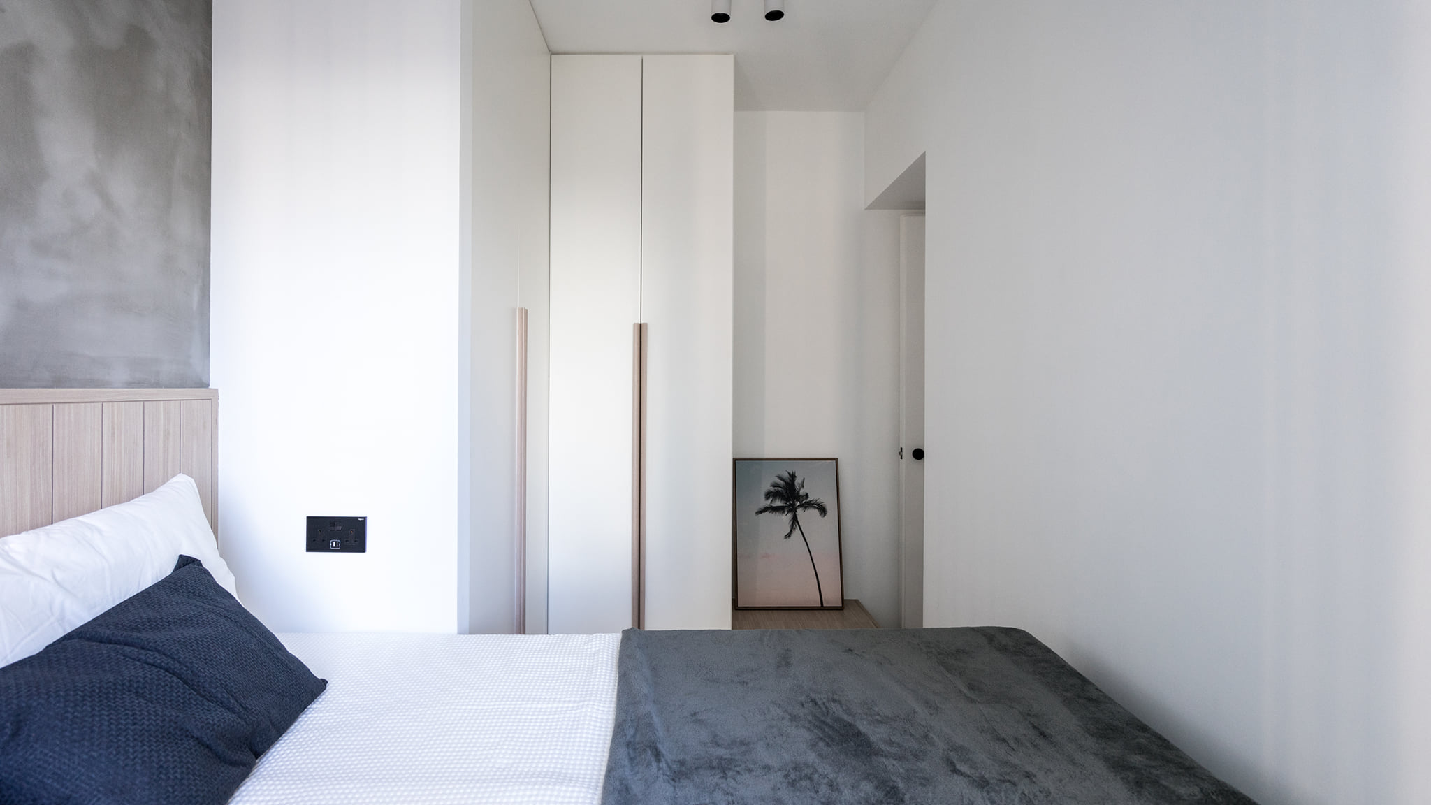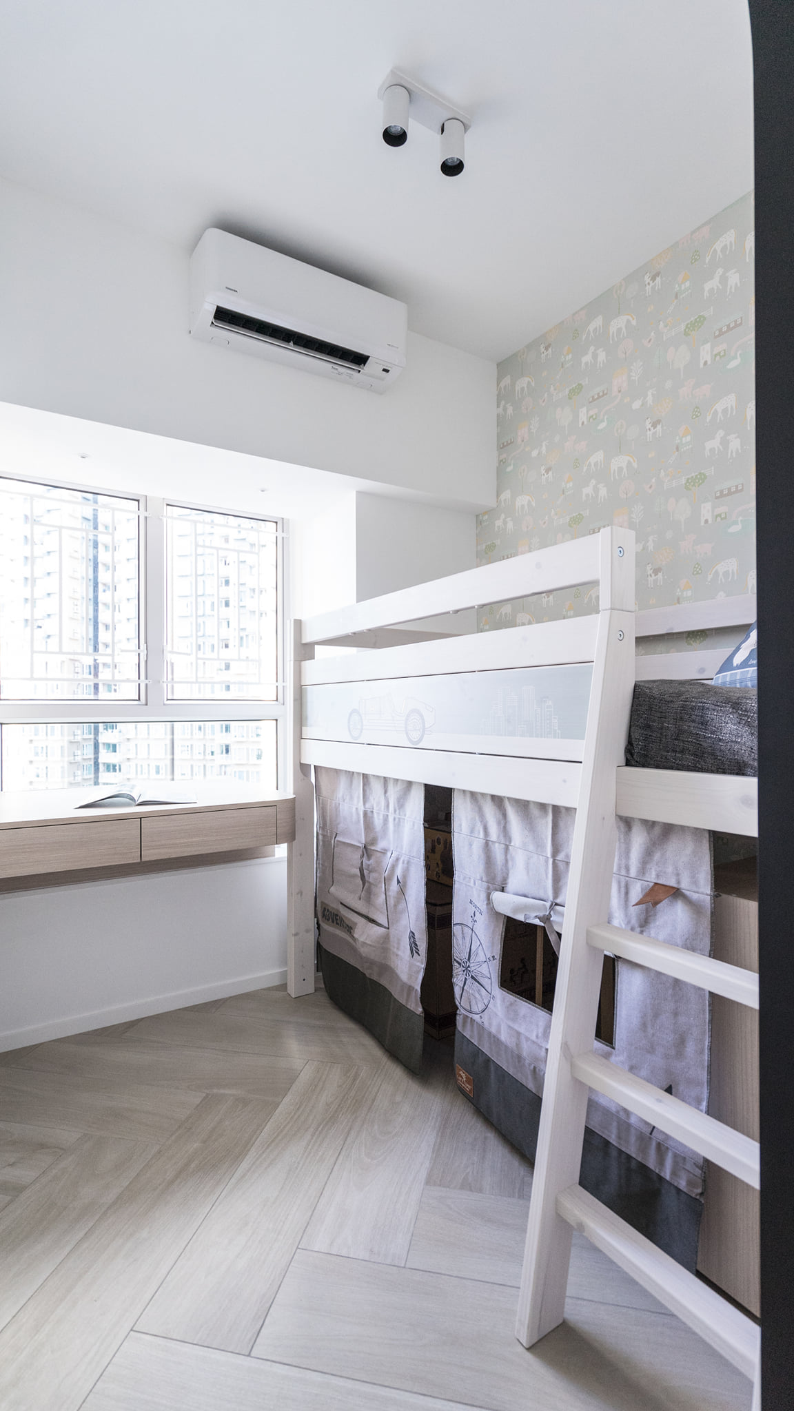 A young couple particularly favored the balanced color palette of Scandinavian design, with clean lines and pure elements serving as the starting point for a minimalist aesthetic. The design also needed to align with their lifestyle. Throughout the space, the designer skillfully interweaved stone and iron materials, incorporating various textures to revitalize this urban cottage. The entryway, featuring patterned tiles, became a kind of time portal, while curved elements broke the monotony of vertical visuals, achieving balance and adding a touch of beauty. In terms of color scheme, carefully arranged light wood-grain floor tiles paired with terrazzo accents on the cabinets subtly created an irregular visual experience, enhancing the overall warmth of the home.