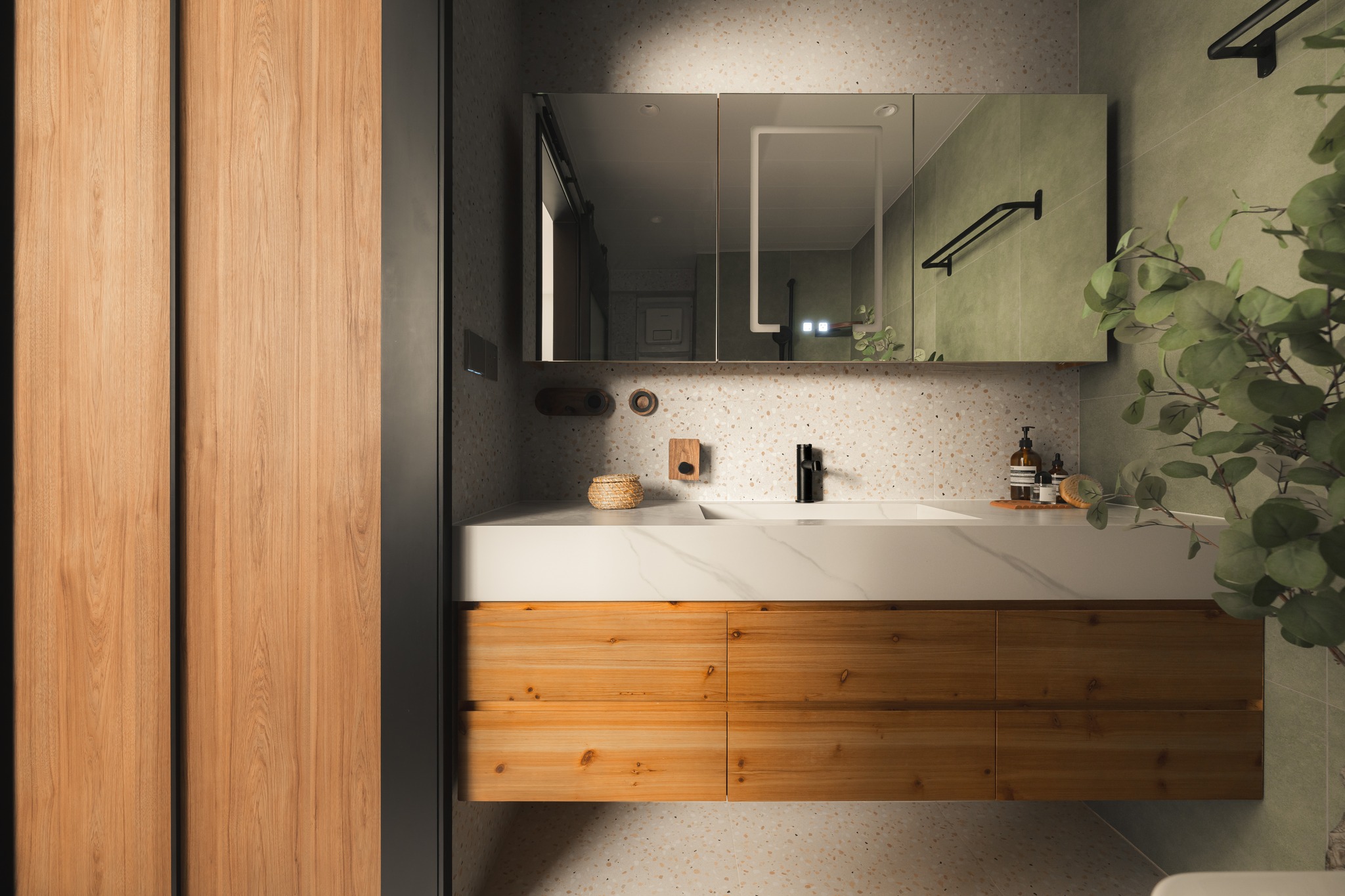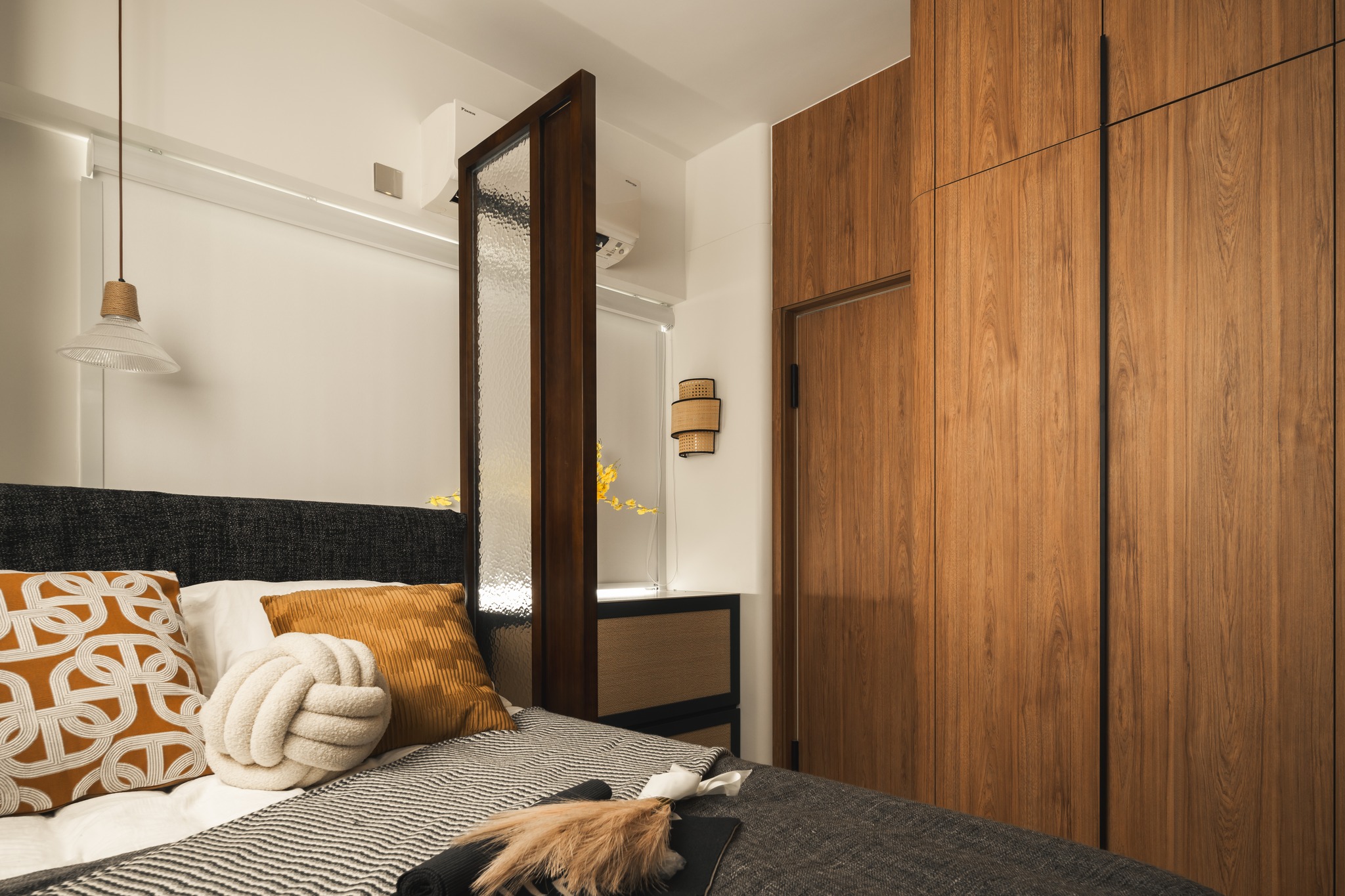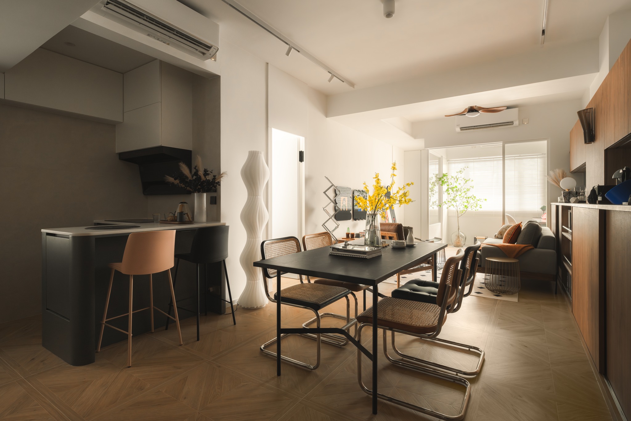This project is based on the medieval style, using olive green and walnut colors on a large scale to lay a refined retro tone for the home. The interspersed elements of rattan, arc, tiles floors polish the details of the space again, making each the space is full of exquisite retro and fashionable styles. Let’s walk into a home with medieval style decoration and design!