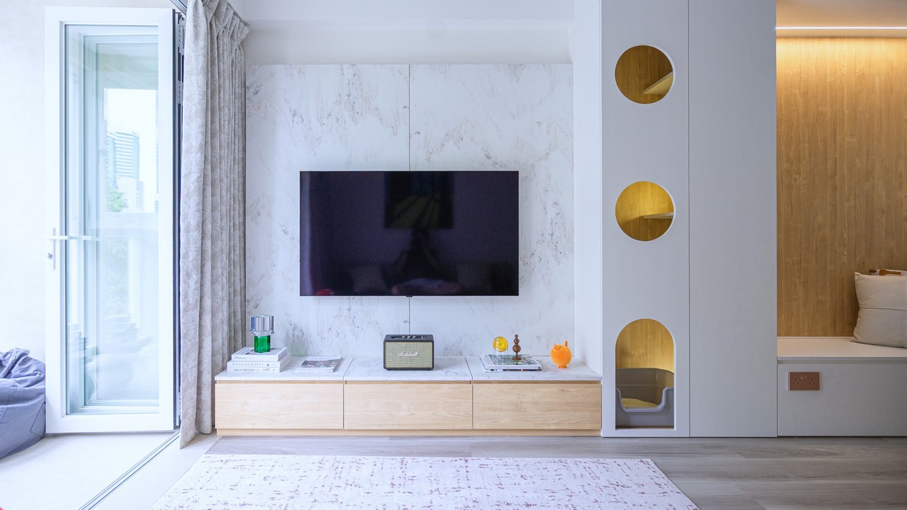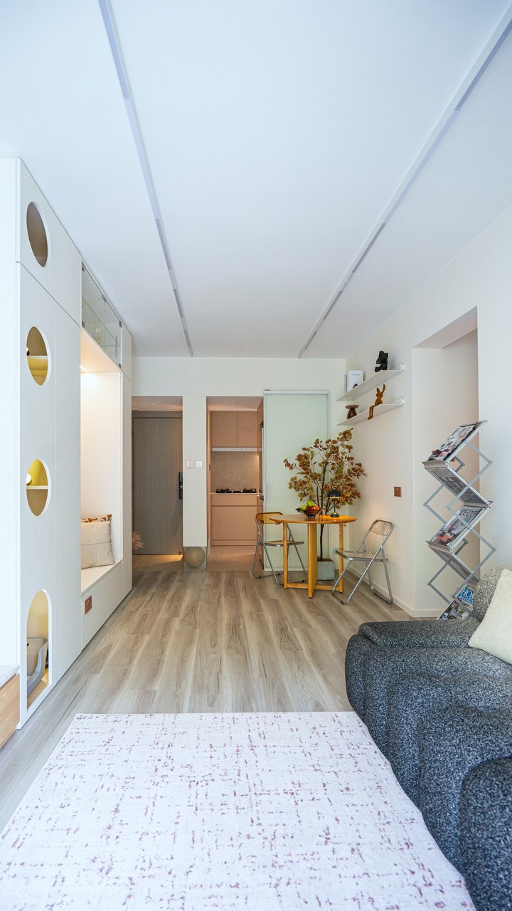 In the 50-year-old Baoma Terrace, the 700-foot space is transformed into a cat paradise. The core of the design focuses on the needs of cats: carefully constructed “skywalks” and cat climbing frames, allowing cats to jump and explore freely; cleverly hiding cat litter boxes in the space to maintain the cleanliness and elegance of the room; non-slip and wear-resistant SPC floors are laid throughout the room to protect cats’ paws from running safely; anti-scratch panels are integrated into the walls to protect furniture and satisfy their nature. In the colorful dance, every detail is tailored for cats’ habits – from the high-altitude resting platform to the hidden and quiet corners, silently telling the deep affection and consideration for furry children. This place is not only a cozy home for people, but also an exclusive kingdom for cats to play freely and be pampered, creating a colorful and lively poem of harmony between humans and cats.