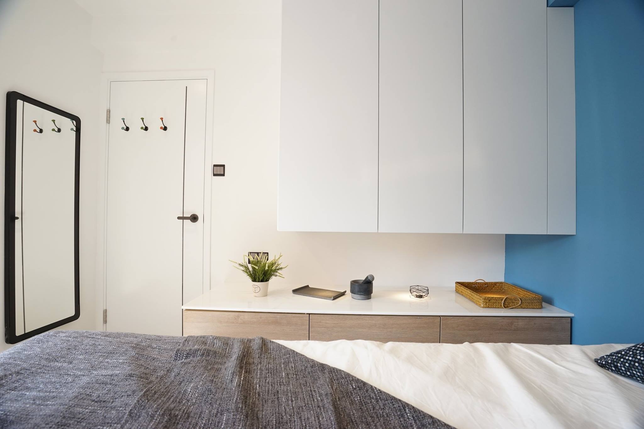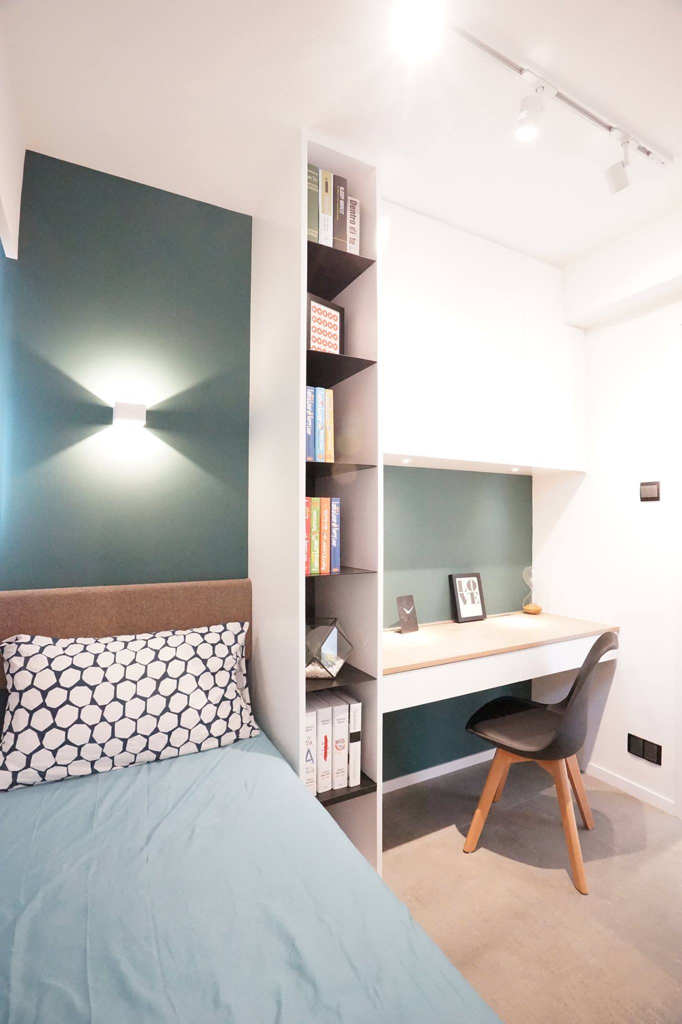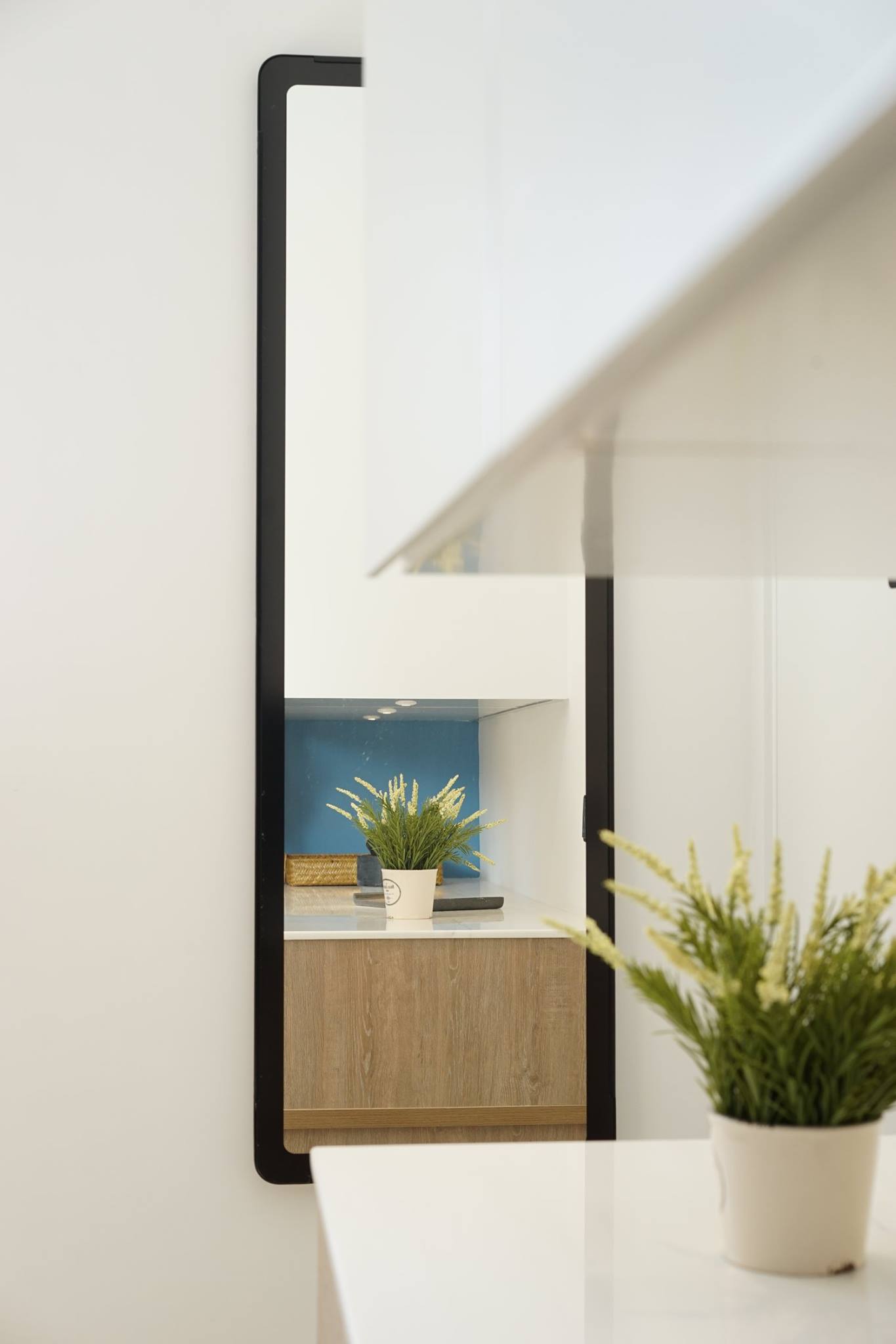 A retro-minimalist home is not just a place for family living, but also a source of inspiration, where creative ideas can spring. Stepping inside, you’re immediately struck by the drum set in the black iron-glass room beside the door. I’ve always found drummers incredibly attractive, especially girls. Unfortunately, I don’t know anything about instruments, so I can only admire the drums from afar. Speaking of which, turning the original kitchen into a drum room wouldn’t be cool. The kitchen was naturally moved to a separate, open-plan space, but the standard layout couldn’t meet the designer’s creative needs, so a unique dining table extends from the kitchen cabinets. Perhaps this idea originated here. Adding pink dining chairs creates a distinctive style. A traditionally simple hallway is too boring; why not add some playfulness to create a two-tone effect? Raw concrete against a bohemian wall—a perfect balance of strength and softness. Entering the bedroom, you’re immediately drawn to the bright window and desk combination under the sunlight. I sat down for half an hour to clear my mind and find inspiration. (Maybe I’m not even dreaming yet, hehe…) Looking at the other wall, let’s explore layering. Who says a bed alone is boring? Of course, large storage spaces are also available; it’s up to your eyesight to find them. You can even watch the video to experience the real scene.
