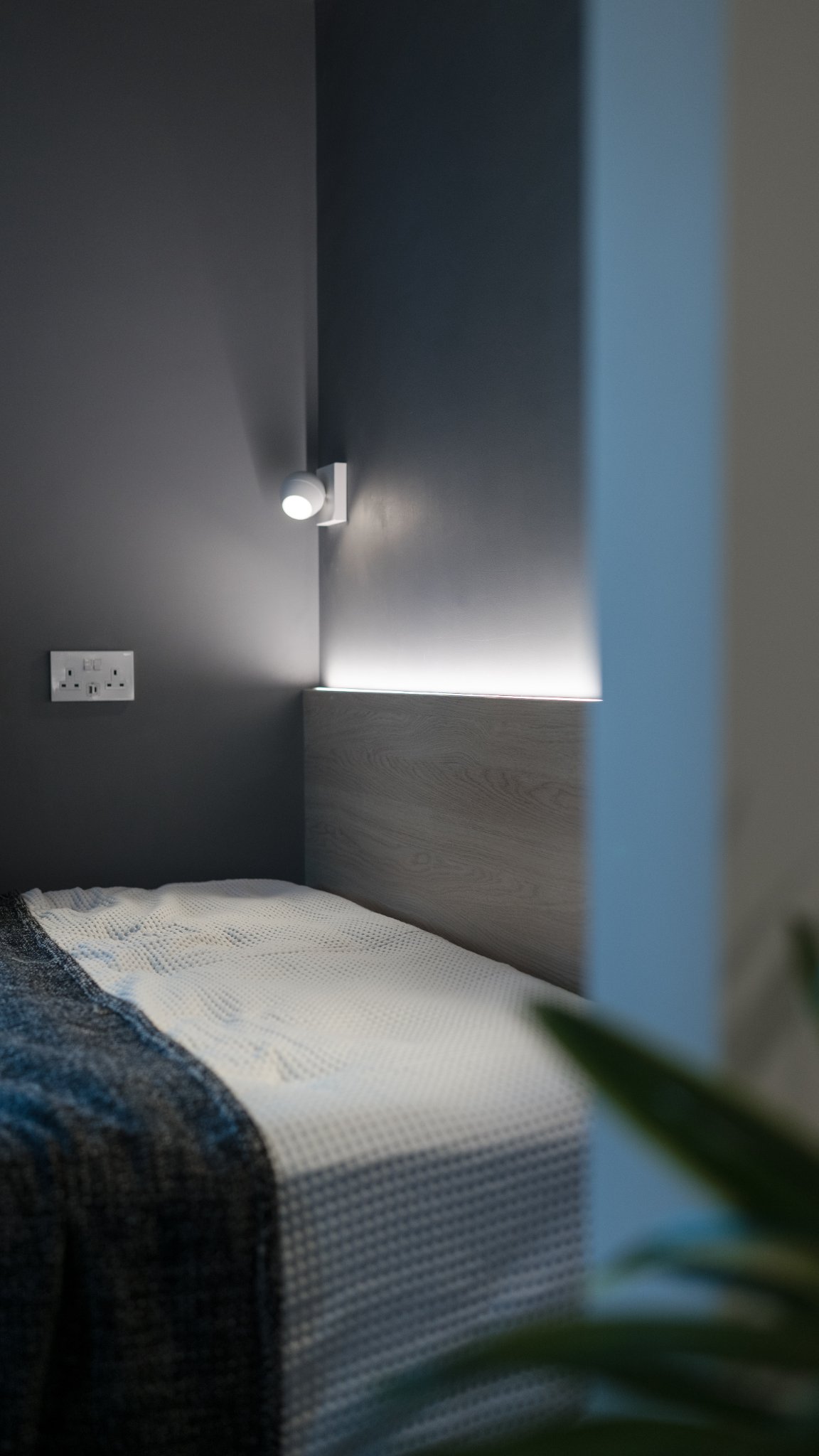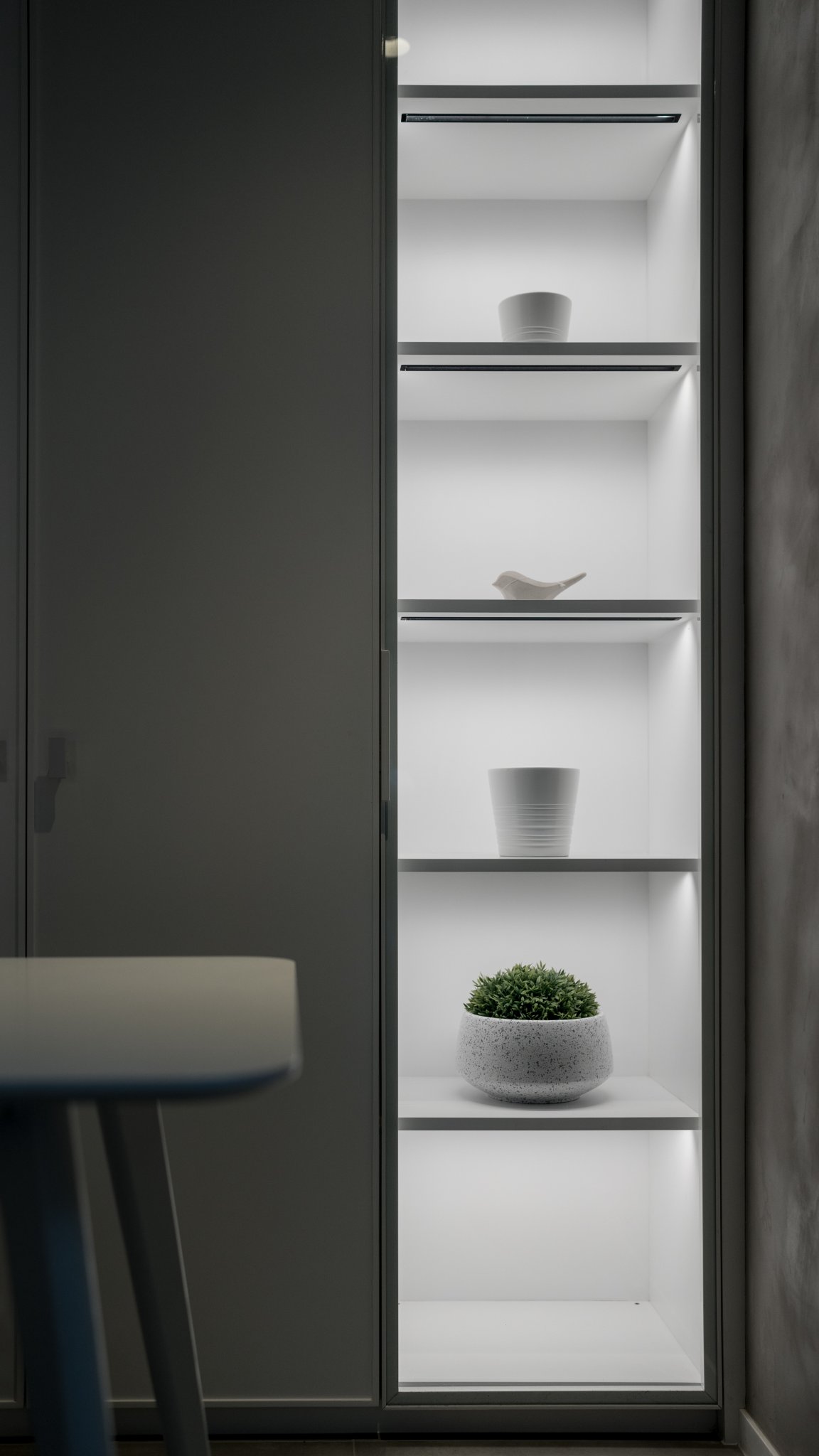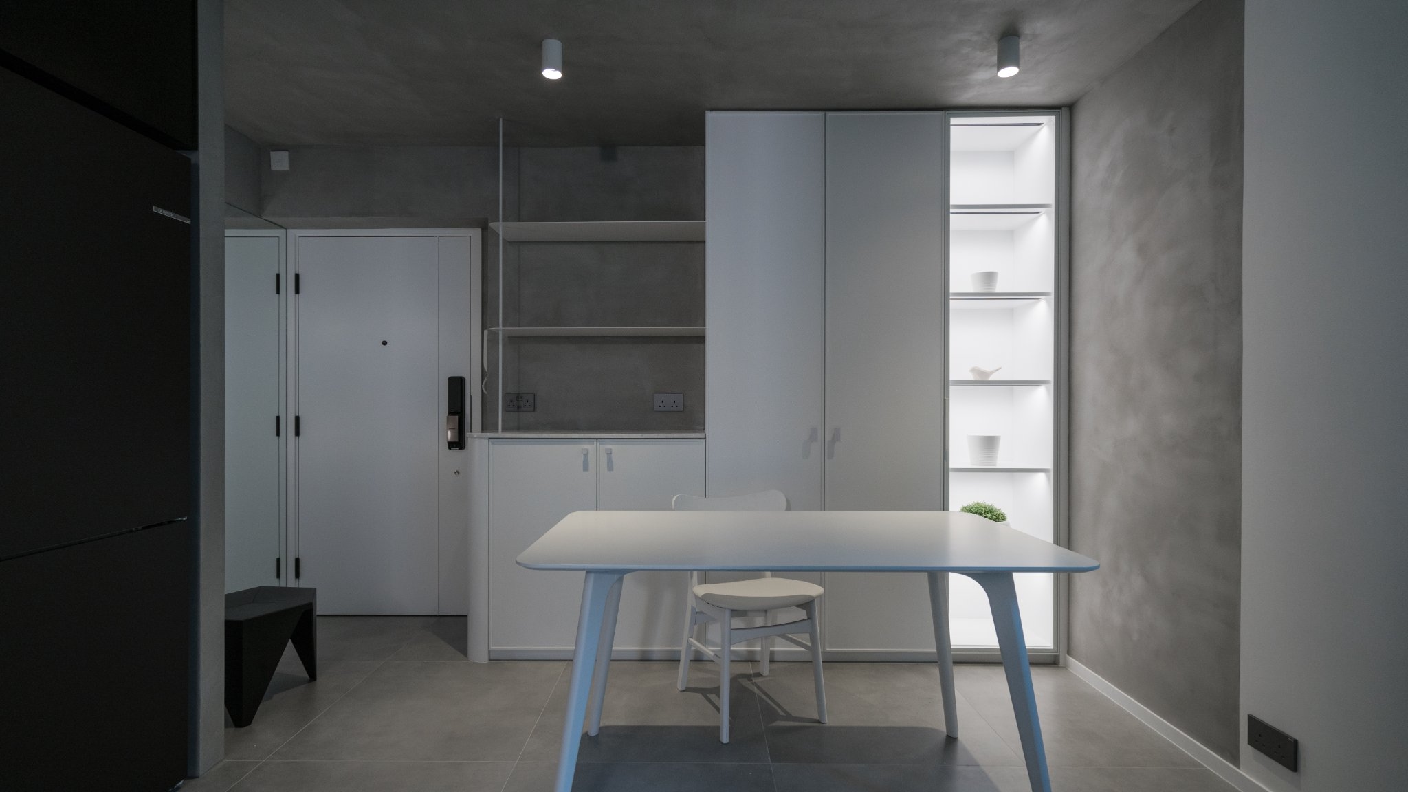 Calmness and Freedom: Whenever the surrounding environment becomes complex, pressure follows, and we need to find an environment where we can breathe. Simplifying complexity is precisely the space we need. Extreme colors include black and white, while gray areas represent the resulting order, allowing time to stand still in our hearts. Blue is like a window that will open, allowing us to find our own support.