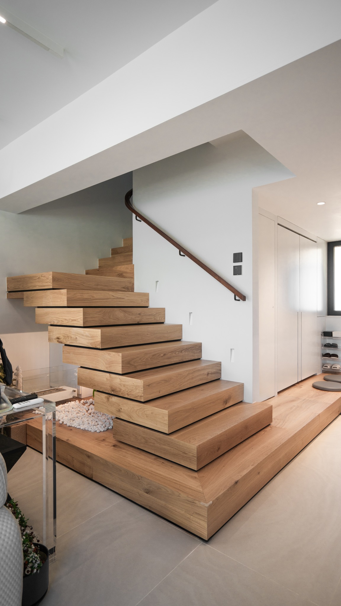 Through the selection of materials, wood, glass and metal are cleverly combined to create a modern, warm and practical living environment. The continuity and flow of daylight in the open space, guided by the wooden stairs, provide visual enjoyment and bring convenience and comfort to life.