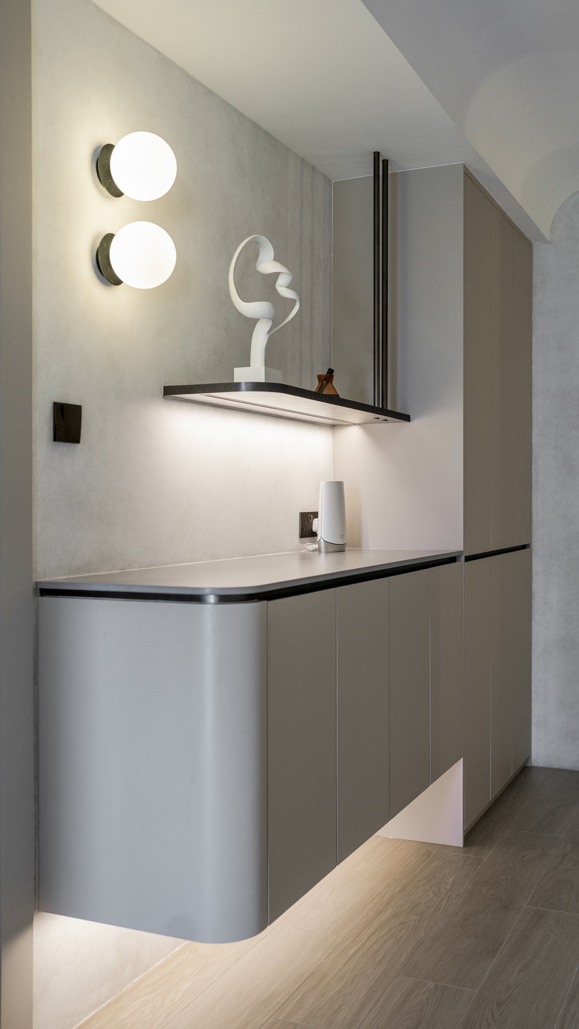 It is a kind of precipitated mood to hope that the owners will come home and come into sight after passing through the corridor. The space planning, in order to retain the maximum degree of freedom. The original closed kitchen was transformed into an open space, and a island bar was placed in it to connect with the dining table, which became the moving line center for gathering family members. Whether it is a meal, a simple nap, or a cup of coffee, it will naturally move to this area.