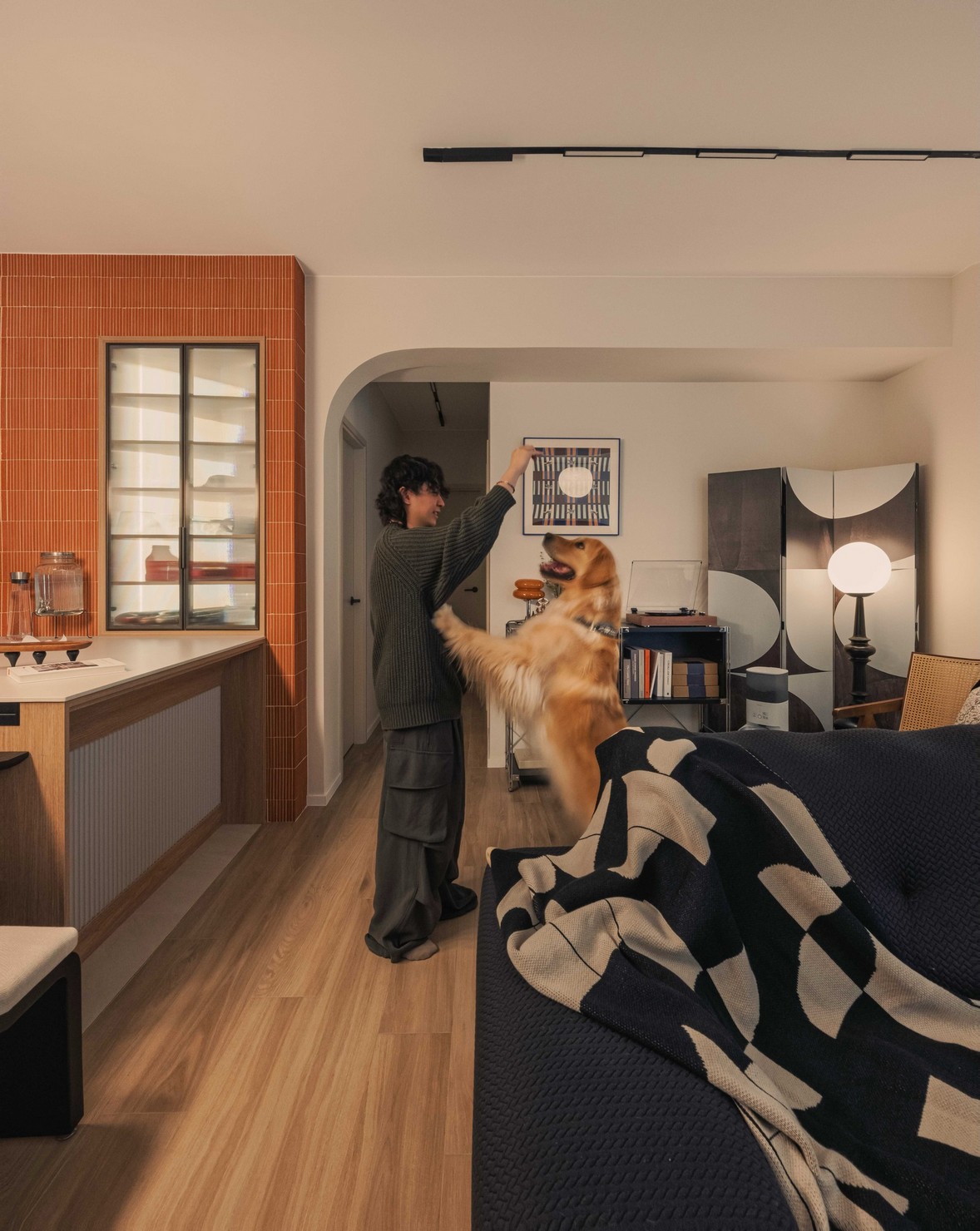 This is a cozy home built for a couple and their pet dog. The design focuses on the planning of an open kitchen to enhance the sense of space and natural light. The overall design is based on functionality and beauty. The kitchen and living room are connected without any blocking walls. Considering the activity needs of the pet dog, a spacious floor space is incorporated into the design to facilitate its free movement. At the same time, wear-resistant and non-slip floor tiles are selected to balance safety and practicality. This home is not only a cozy home for a couple, but also an ideal place for friends to gather, so that everyone can feel the warmth and joy of home.