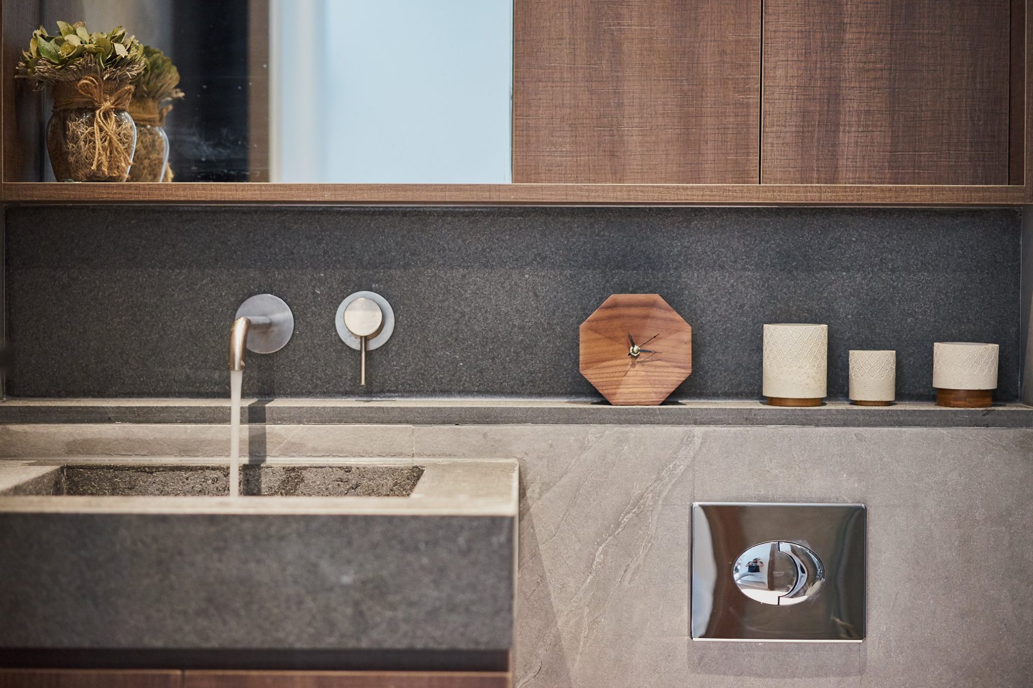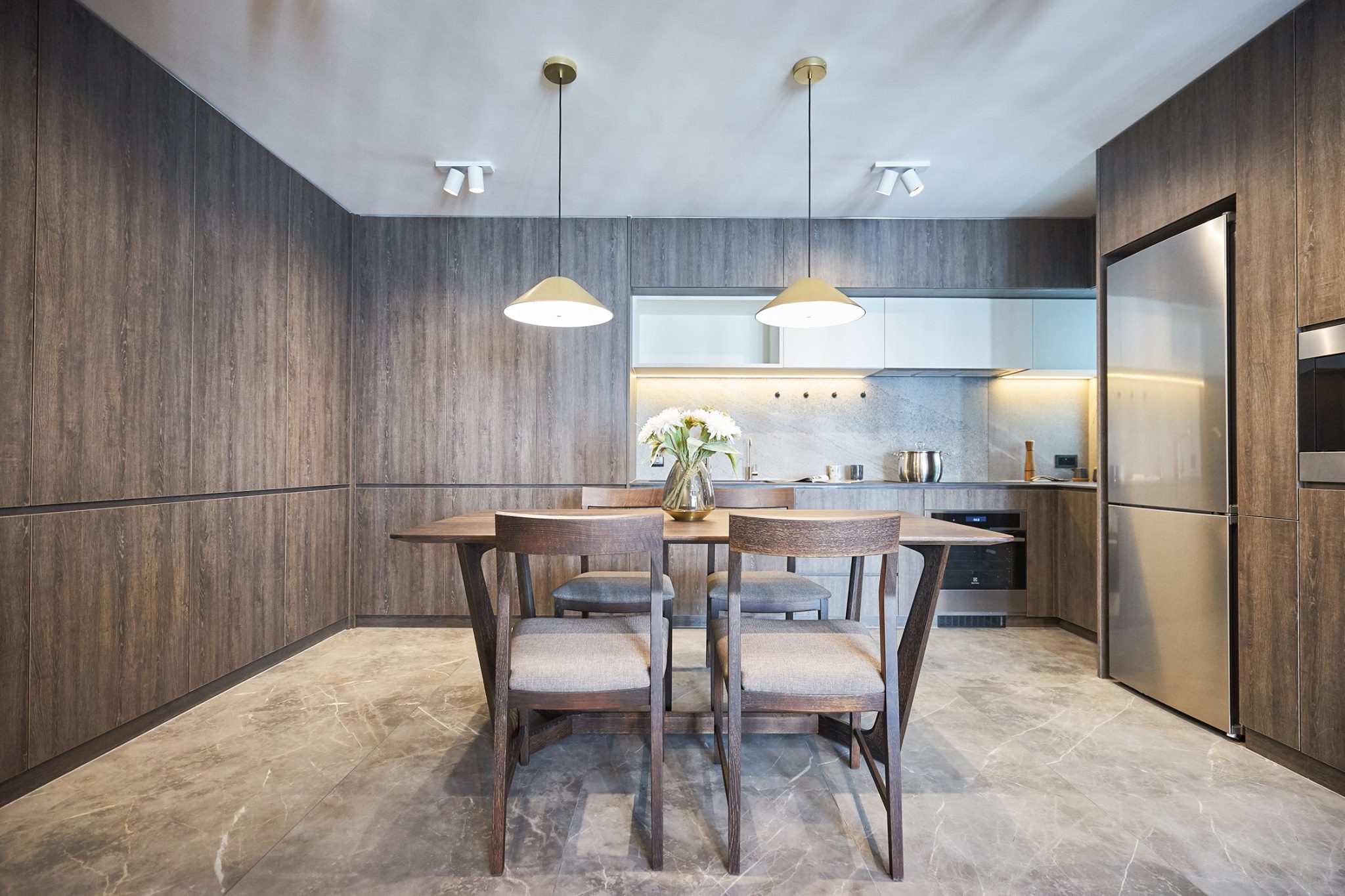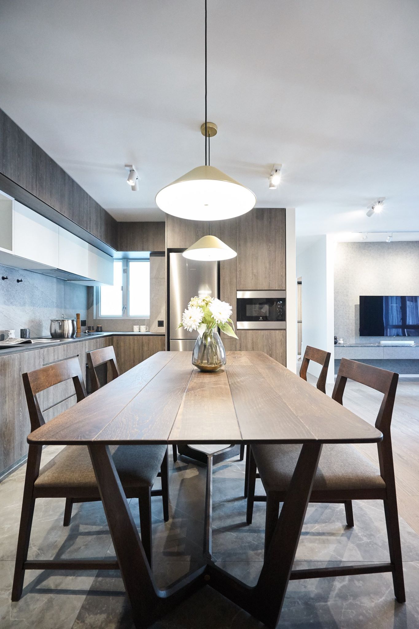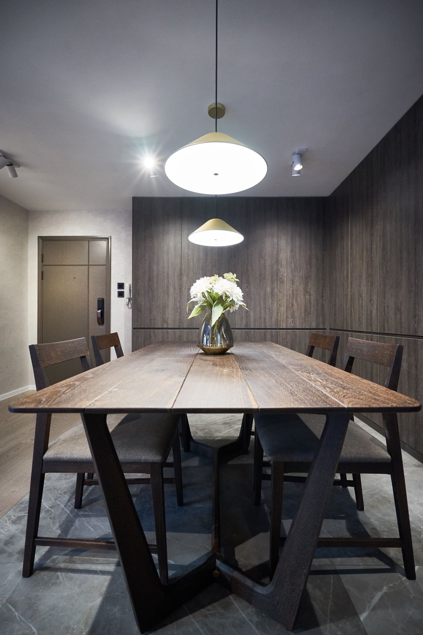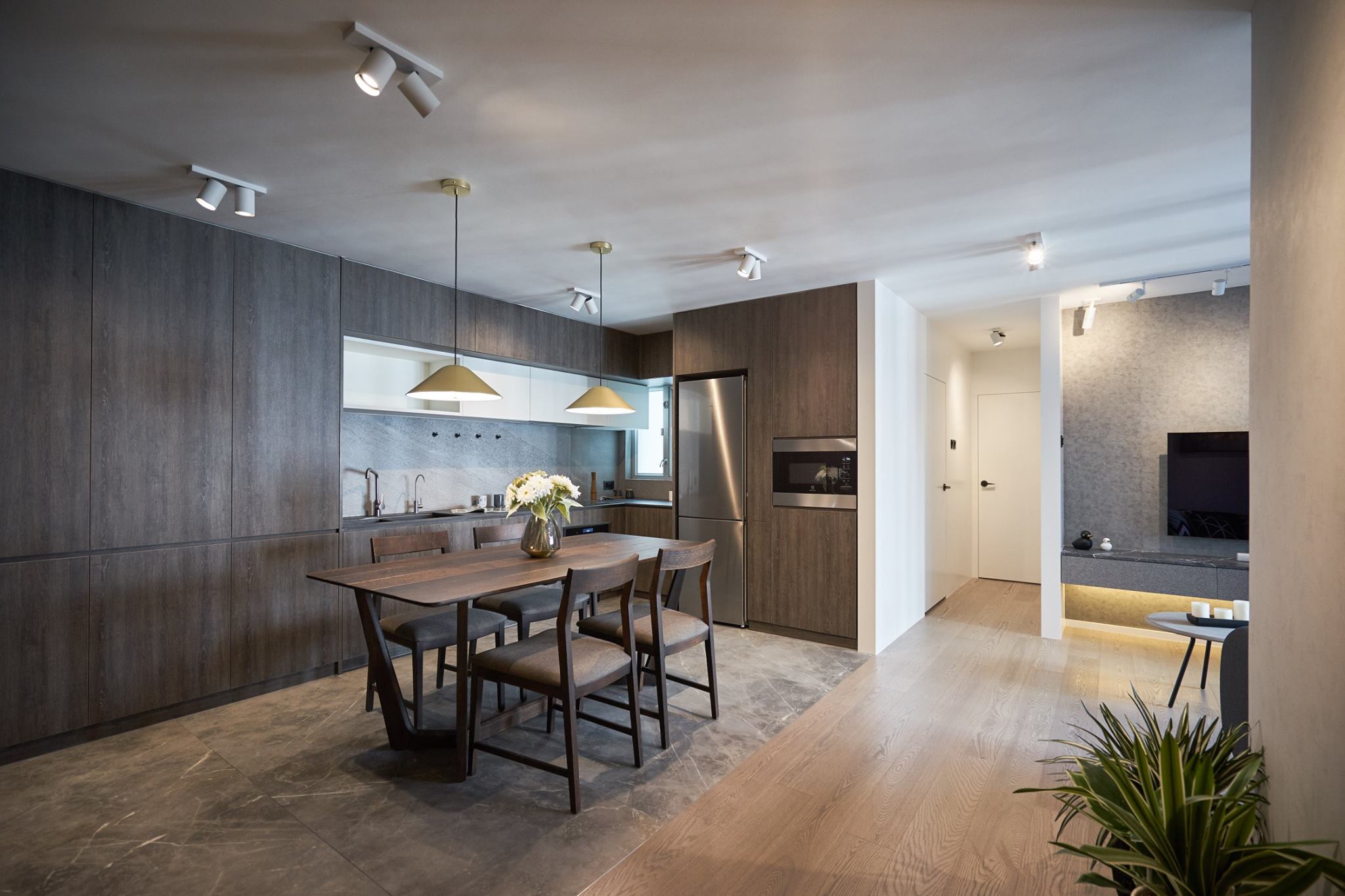 In a long-established residential complex, a design team, and with minor modifications, the proportions of the living and dining areas are perfectly balanced. The use of suitable color schemes makes the kitchen and dining area the focal point of the house, allowing guests to appreciate the meaning behind each meal. The living room uses a more subdued color palette as a base, making the view outside the window blend in more easily, thus achieving a balance between the living and dining areas. A more mysterious lighting approach is used in the shower area, allowing the homeowner’s daily fatigue to slowly settle. The small relaxation area doesn’t need too much embellishment, allowing the homeowner to easily detach from their daytime role. A small room was retained as a walk-in closet and storage room, sufficient to accommodate the homeowner’s lifestyle.