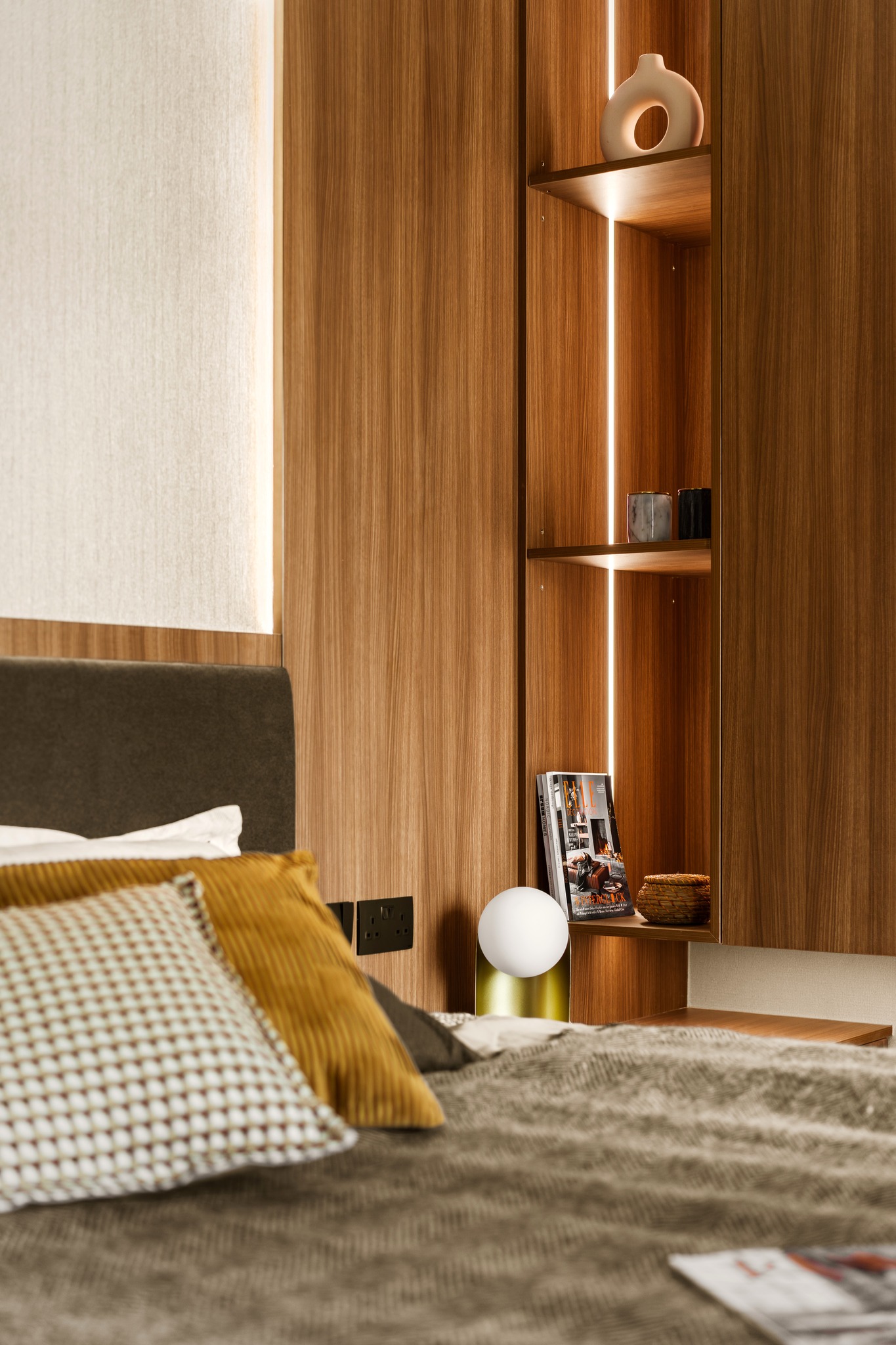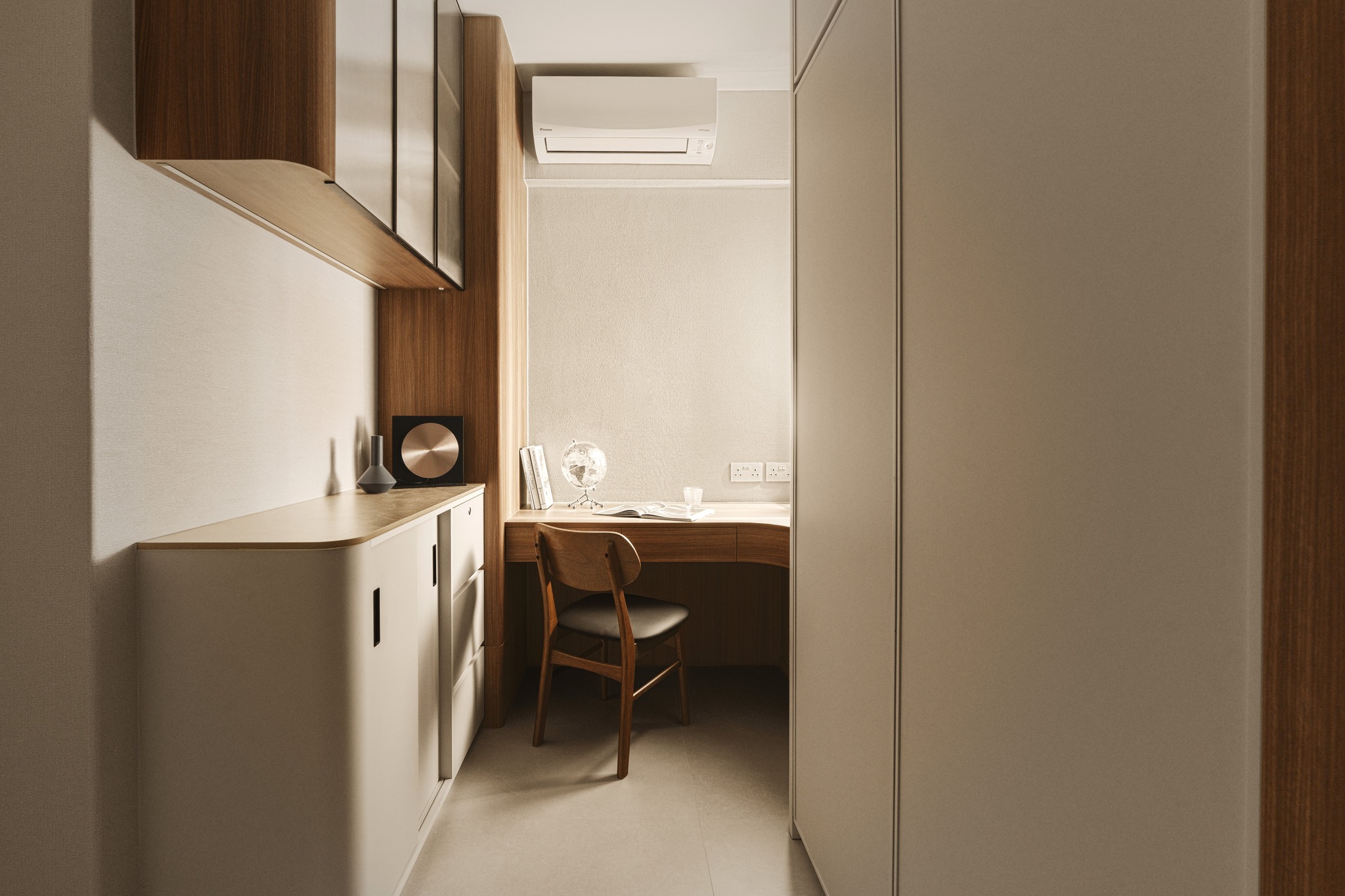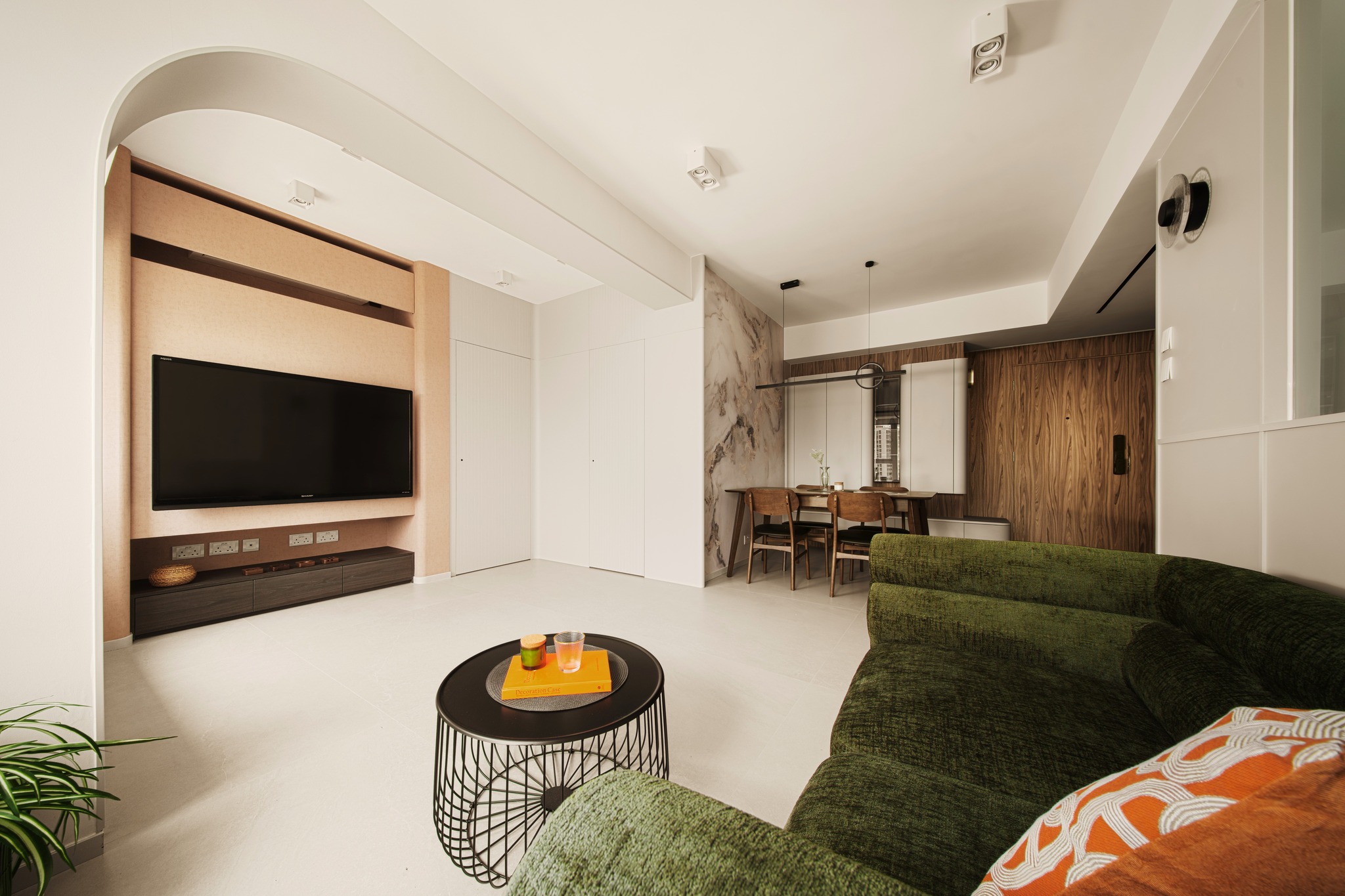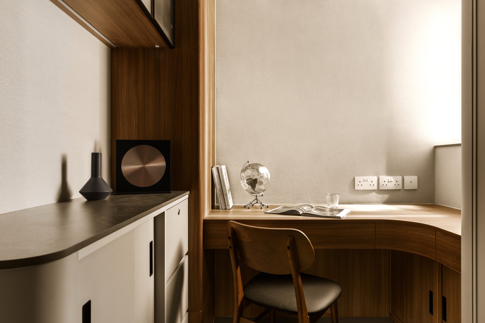 Tierra Verde In a tranquil space, the warm walnut wood blends with the light gray walls, whispering the stories of time. The pristine marble walls resemble a painting, adorned with art that touches the soul, allowing each corner to radiate a unique charm.
