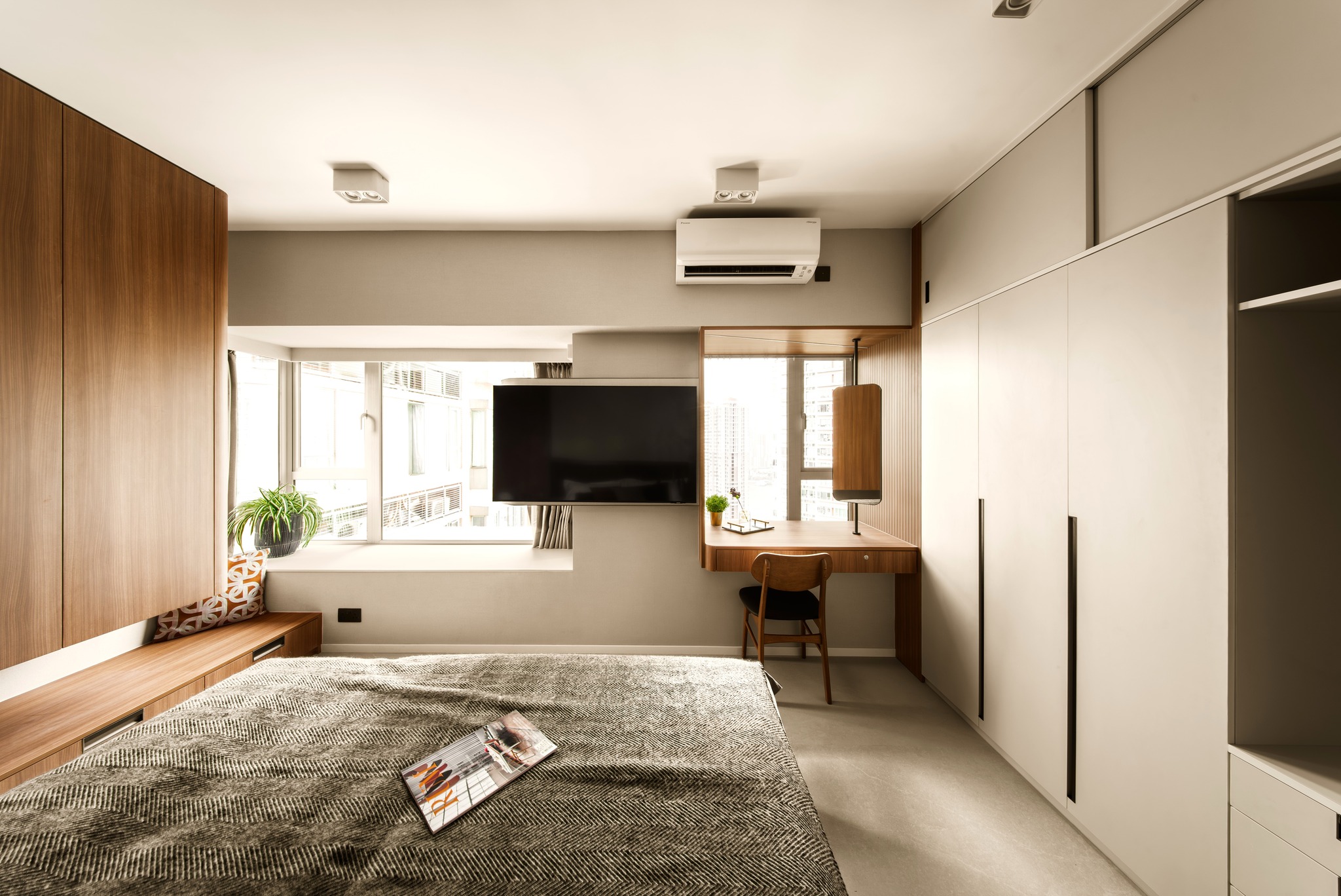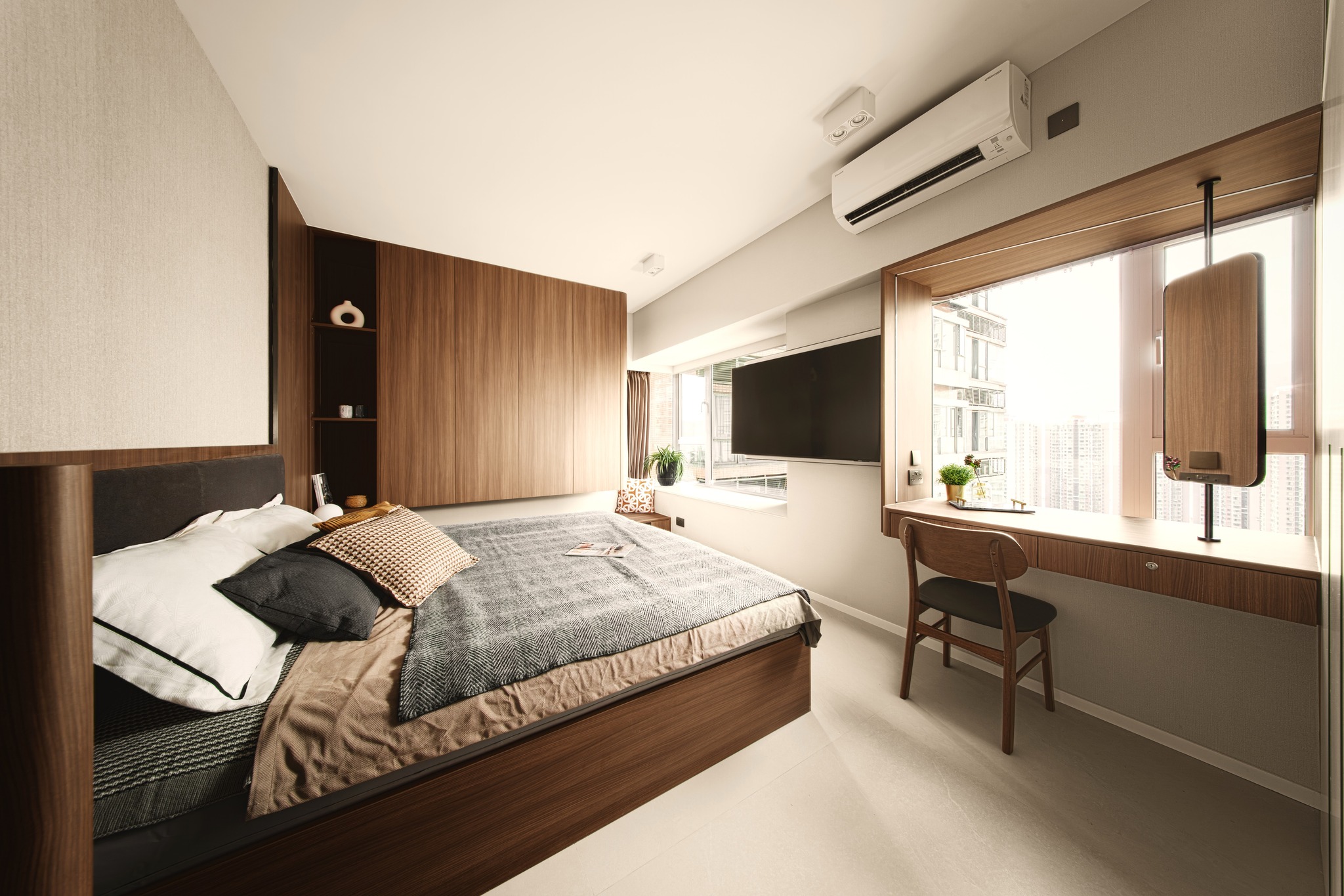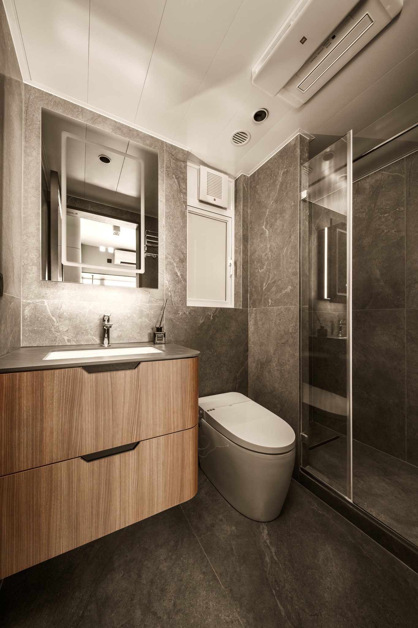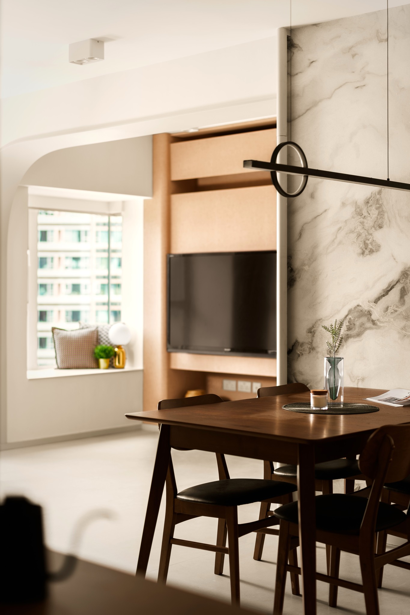 Tierra Verde In a tranquil space, the warm walnut wood blends with the light gray walls, whispering the stories of time. The pristine marble walls resemble a painting, adorned with art that touches the soul, allowing each corner to radiate a unique charm.
