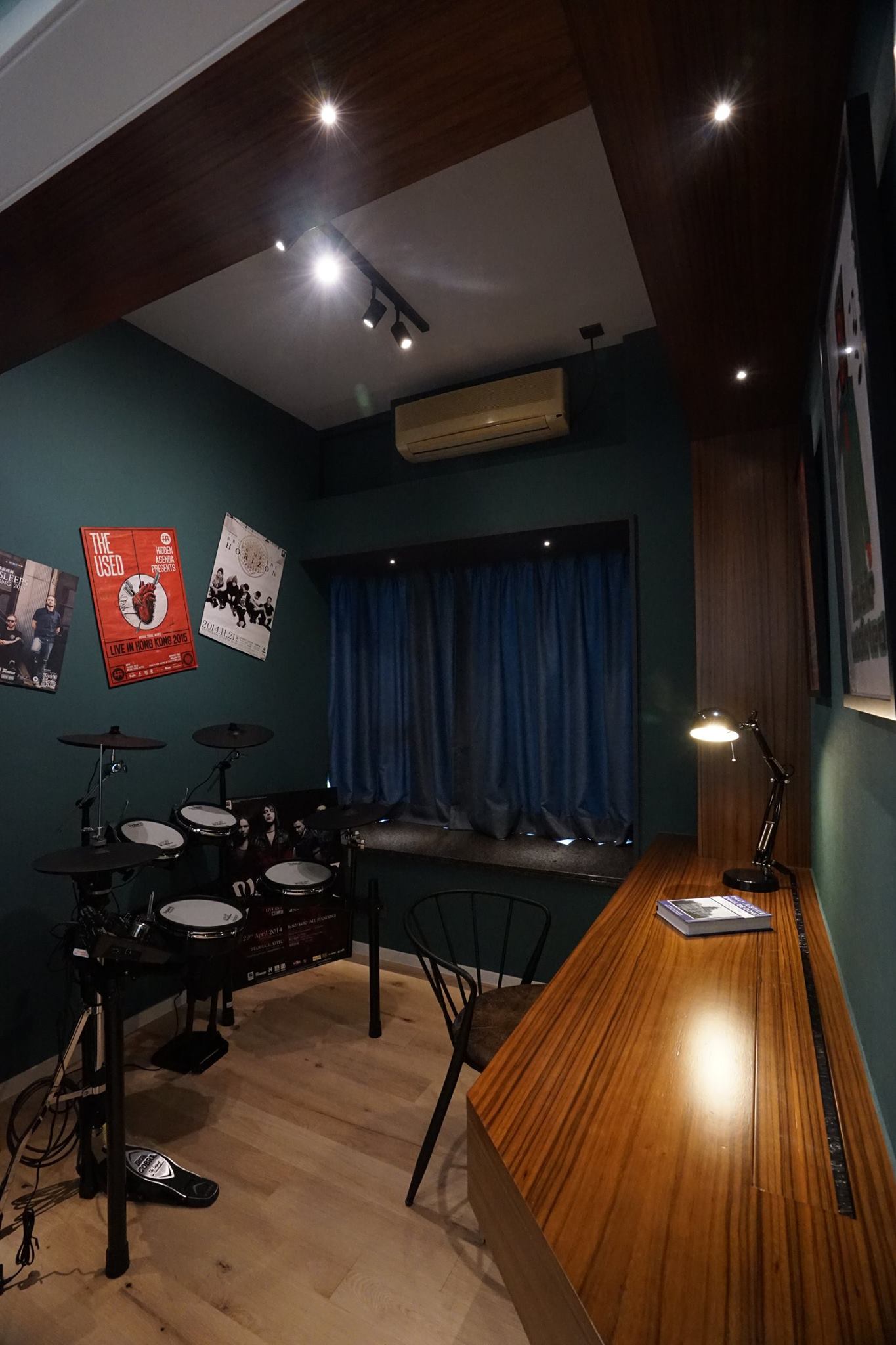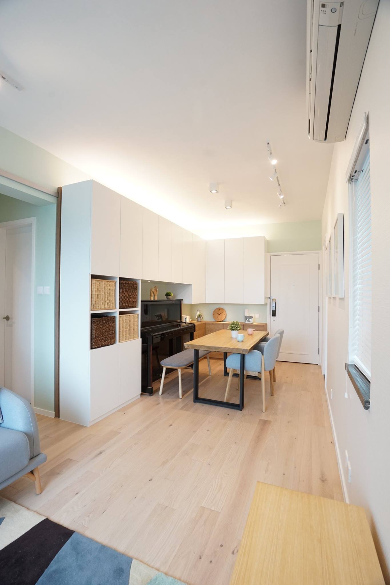 Leisurely Playing: Living space in Hong Kong is already limited, making it even more difficult to play musical instruments at home. This has led to the emergence of many industrial building band rooms. But the designer refused to compromise, turning the impossible into possible. The living room combines storage cabinets and a piano—two seemingly unrelated items—yet they don’t feel overwhelming placed together. The drum room features soundproofing and a unique “Moody” color scheme, a color rarely seen before. Keen observers might notice the need to turn and the stairs to enter the main room? Why? You know why. (Answer: Read on) Increased storage and privacy; you can even enter a video to experience the real scene.